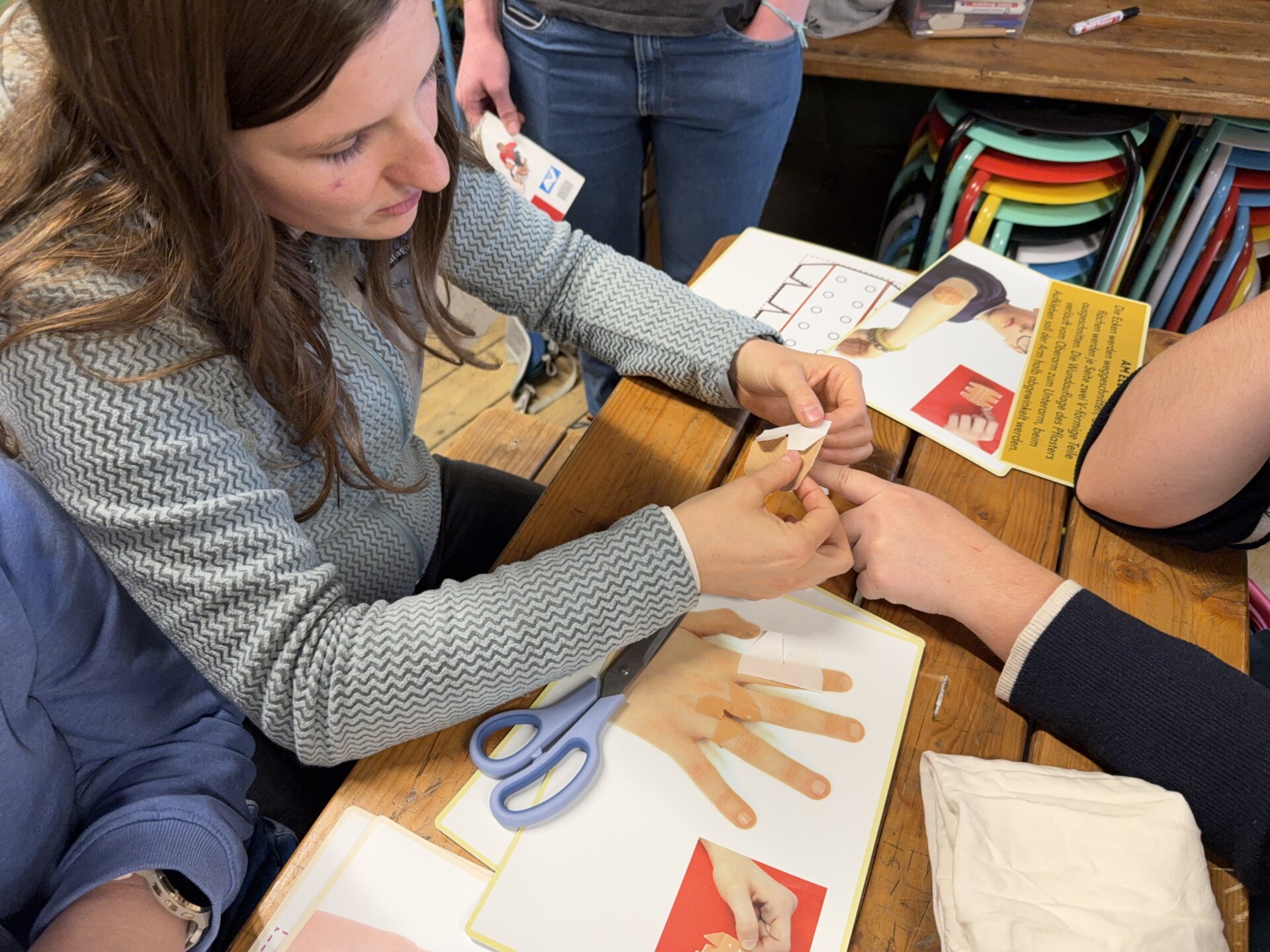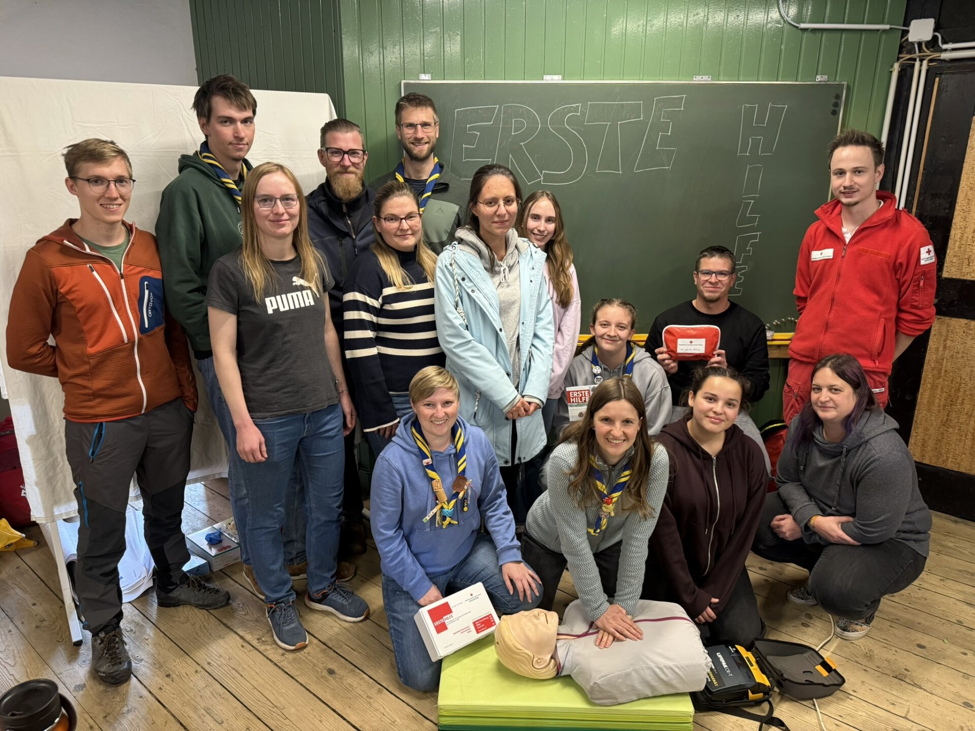 Der Kurs richtete sich nicht nur an unsere Leiter, sondern auch die RaRo und CaEx hatten die Gelegenheit, in dem 16-stündigen Kurs praktische und lebensnahe Übungen zu lernen, um für den Ernstfall gerüstet zu sein. Mit einer Mischung aus Theorie und Praxis lernten die Teilnehmer alles vom richtigen Kleben eines Pflasters, über das Verhalten bei allergischen Reaktionen, bis hin zur Anwendung eines Defibrilators.